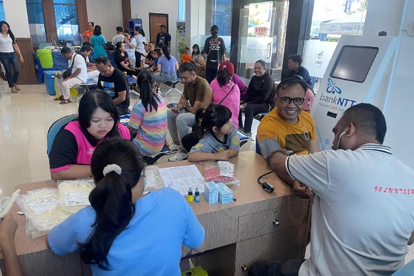 Kegiatan donor darah ini, Bank NTT Cabang Kalabahi bekerja sama dengan petugas medis yang dipimpin Manajer Pelayanan Penunjang Medis pada RSD Kalabahi, Magdalena Ana Djawa bersama timnya.